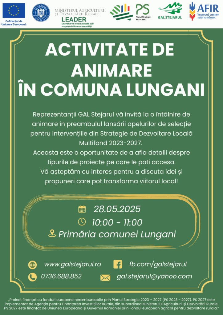Asociația GAL Stejarul începe șirul activităților de animare din acest trimestru in comuna LUNGANI.