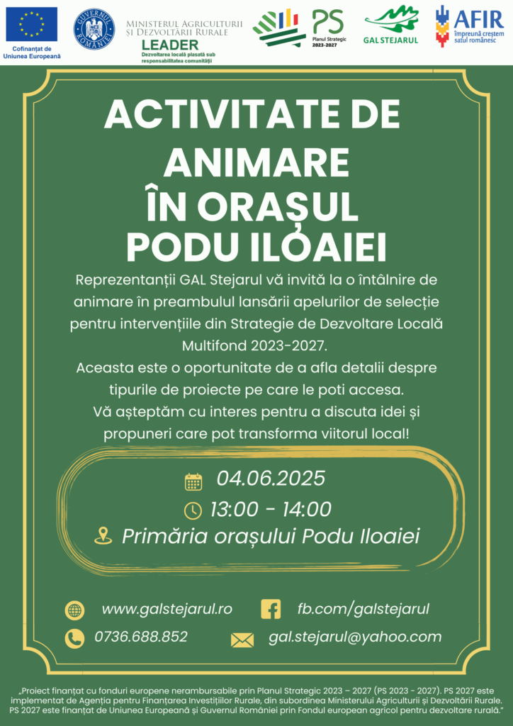 În data de 04.06.2025, echipa GAL STEJARUL va fi prezentă în: